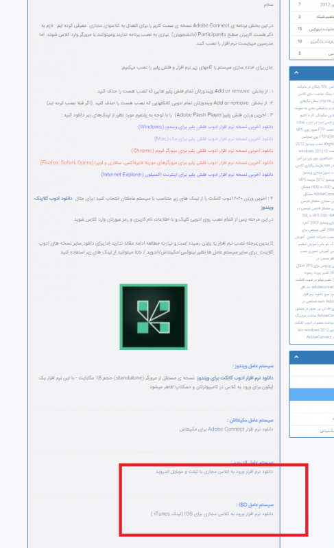 برای کاربران ایرانی بسیار مهم است که از سرویس Adobe Connect روی سرورهای داخلی استفاده کنند، نه سرورهای خارجی.