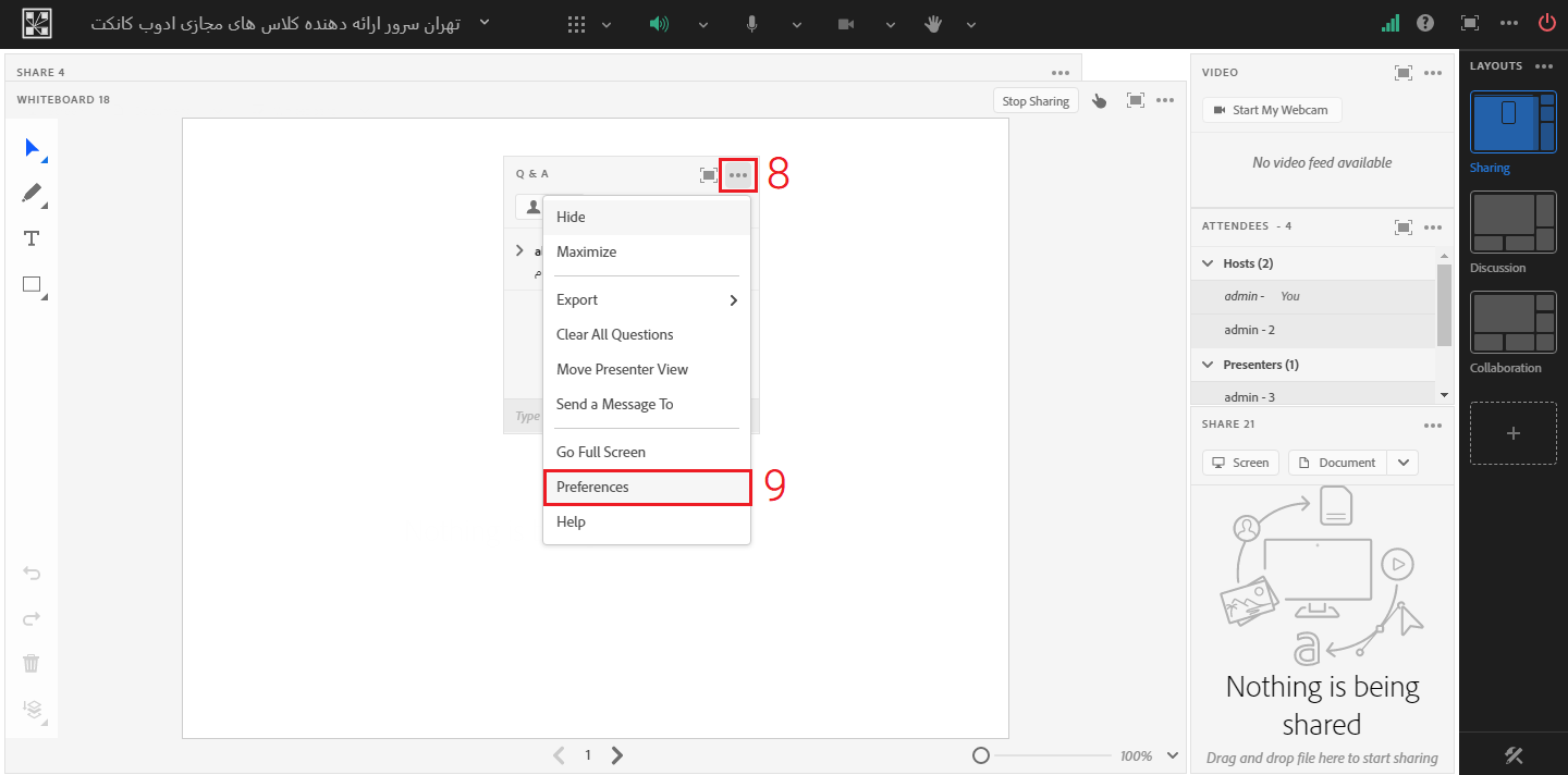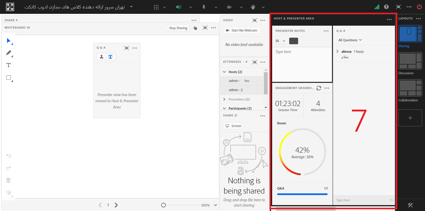بر روی گزینه‌ی Enable Host & Presenter Area (شماره ۶) کلیک کنید تا نمای جدید و بزرگ برای شما