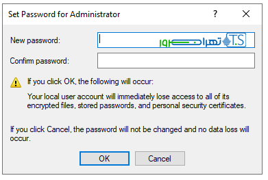 - پسورد جدید را در هر دو فیلد وارد نموده و در آخر ok را بزنید.