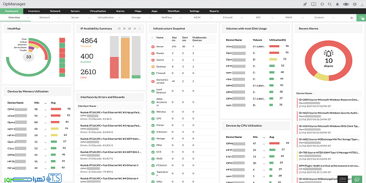 گزینه ی آخر لیست ما نیز ManageEngine OpManager است. برنامه ای که در ویندوز و لینوکس قابل اجرا است. این سیستم، نرم افزار مانیتورینگ کاربردی و عالی برای مانیتور کردن زیرساخت های شبکه و سیستم های شما است. نکته قابل ذکر این است که این ابزار برای مانیتورینگ شبکه های بزرگ با کارایی پایین مناسب است. با استفاده از ManageEngine OpManager مانیتورینگ سرورها به صورت فیزیکی و مجازی برای شما امکان پذیر است. همچنین مدیریت ورودی فایروال ها و شبکه یکی دیگر از مزیت های این نرم افزار کاربردی است. یکی دیگر از ویژگی های جالب آن نیز نظارت بر زمان پاسخ دهی می باشد.