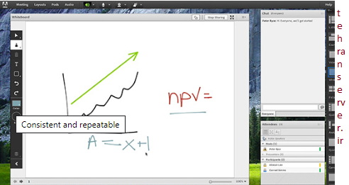 Adobe Connect ادوب کانکت یک سکوی کنفرانس وب است که تجربیات مشترکی را شامل می شود که شامل ویدیو ، صدا ، اشتراک گذاری صفحه ، نظرسنجی ، گپ ، پرسش و پاسخ ، به اشتراک گذاری اسناد و موارد دیگر است. هیچ مشکلی برای نصب یا پیکربندی شرکت کنندگان وجود ندارد ، Adobe Connect در هر مرورگر مدرن کار می کند.
