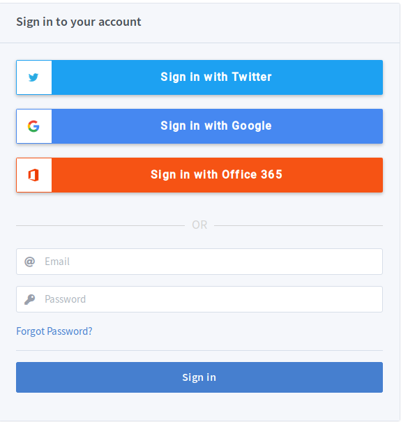 - ثبت نام / ورود با توییتر ، گوگل یا از طریق برنامه خود.
