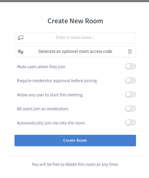 یک کاربر می تواند تنظیمات اتاق را به دلخواه تغییر دهد ، اتاق خود را راه اندازی و متوقف کند ،